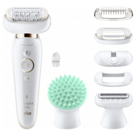 - Комплектация - эпилятор Braun Silk-epil 9 Flex SES; - бритвенная насадка; - насадка-триммер; - насадка для лица; - насадка для более близкого контакта с кожей; - насадка для глубокого массажа; - щёточка для чистки; - кабель питания; - косметичка