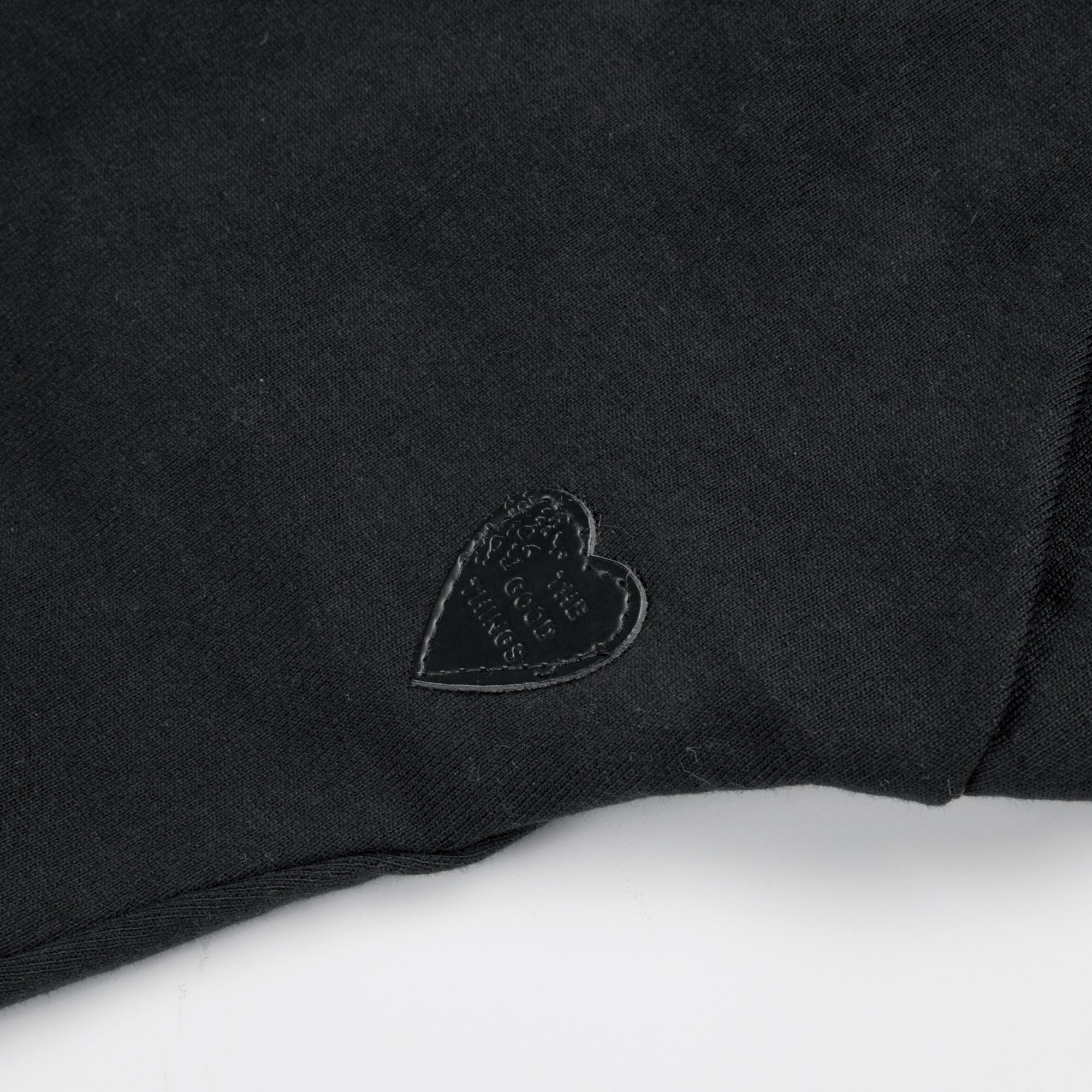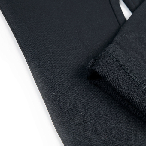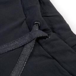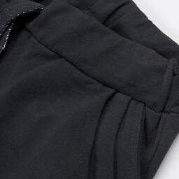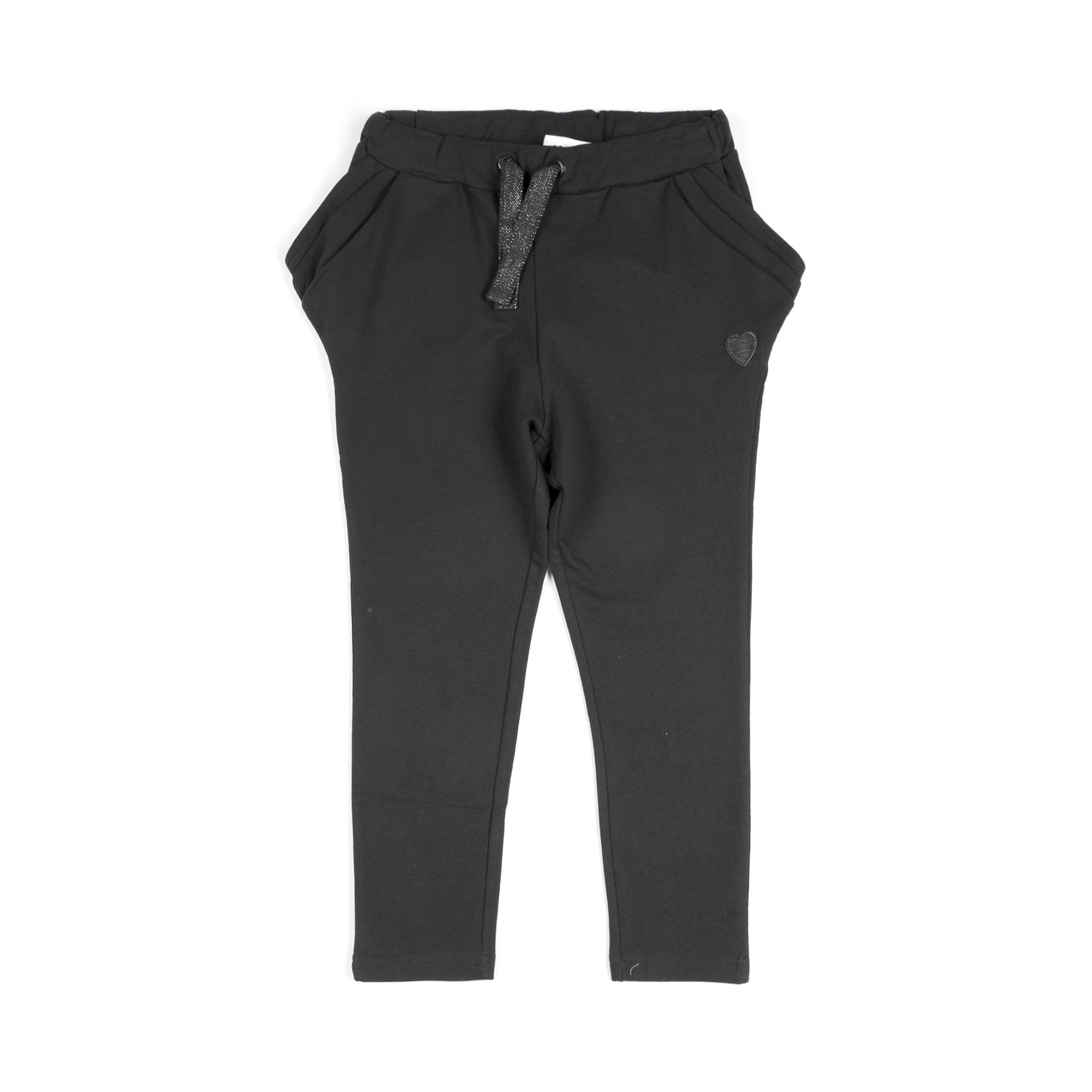 Хлопковые брюки классической посадки для девочки, с интересными скосными карманами и черно-белыми завязками. У кармашка есть аккуратная аппликация в виде сердечка.