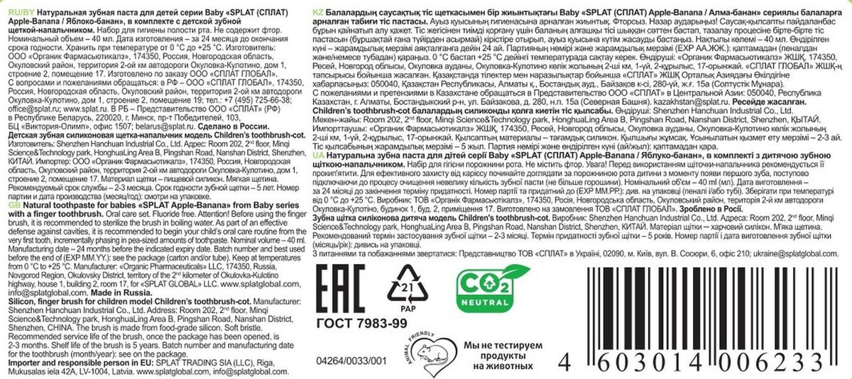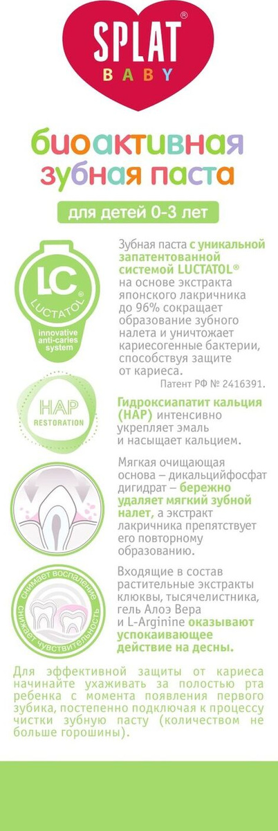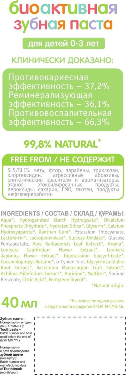 Особенности составаПодходит для ежедневного применения, Без фтора, Без парабенов, Гипоаллергенная, Съедобная, Не тестируется на животных