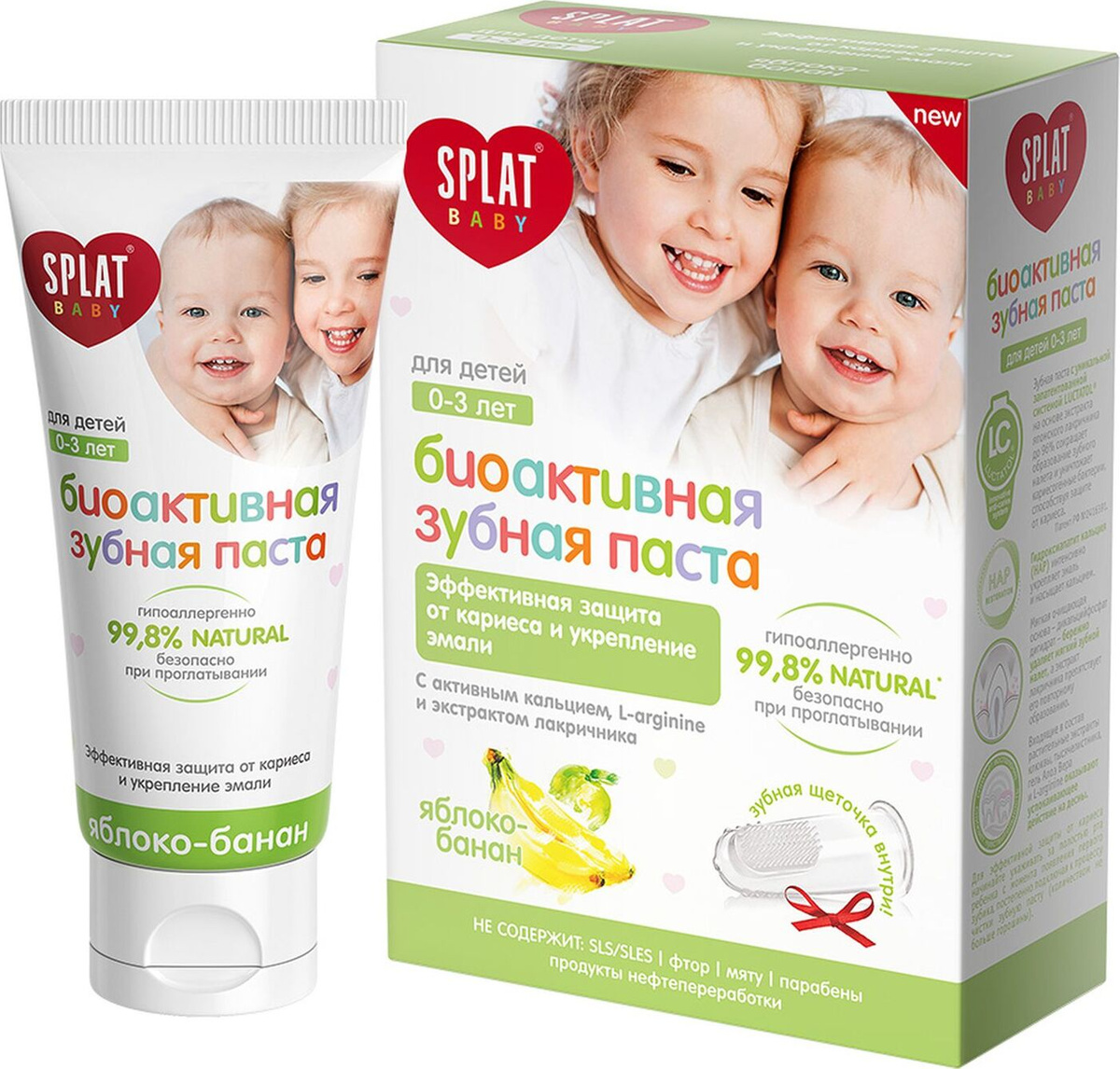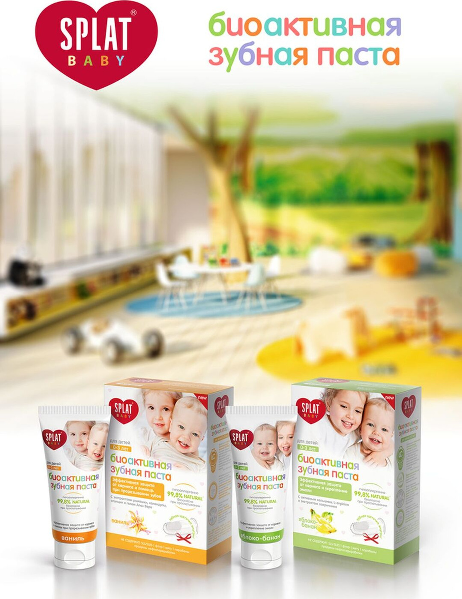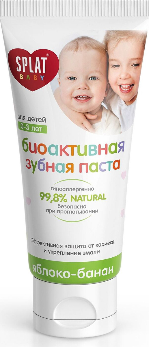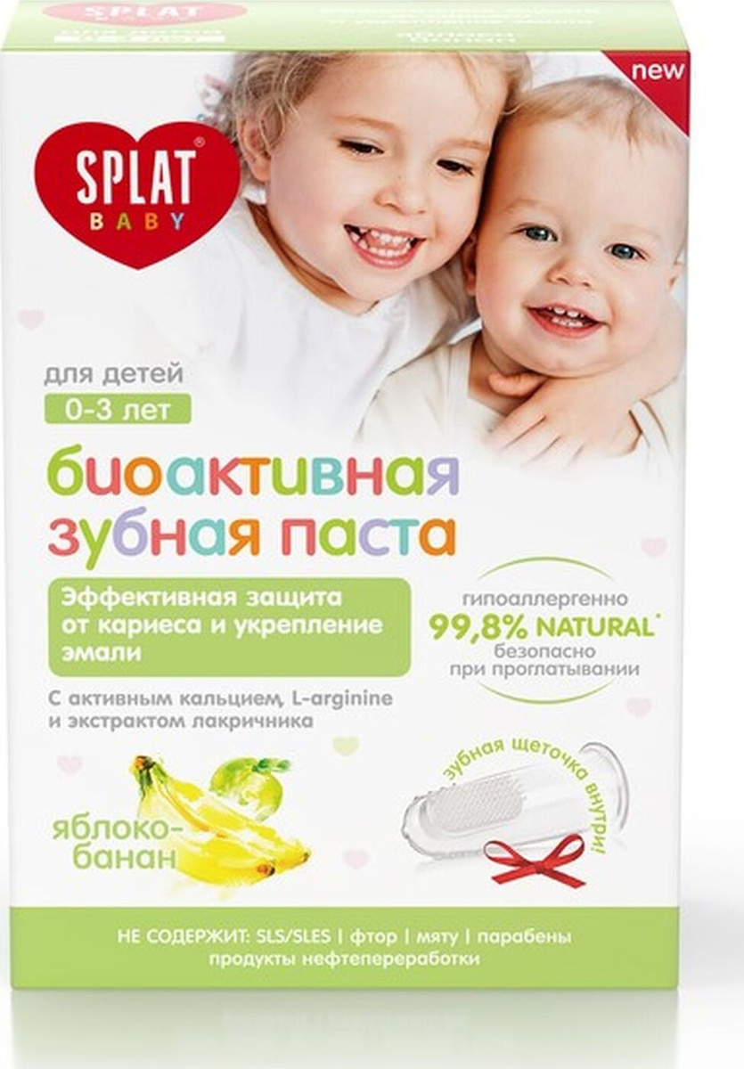 Зубная паста Splat Baby Яблоко-Банан натуральная паста для зубов детей от 0 до 3 лет снижение чувствительности при прорезывании зубов + щетка прорезыватель В ПОДАРОК 2 шт