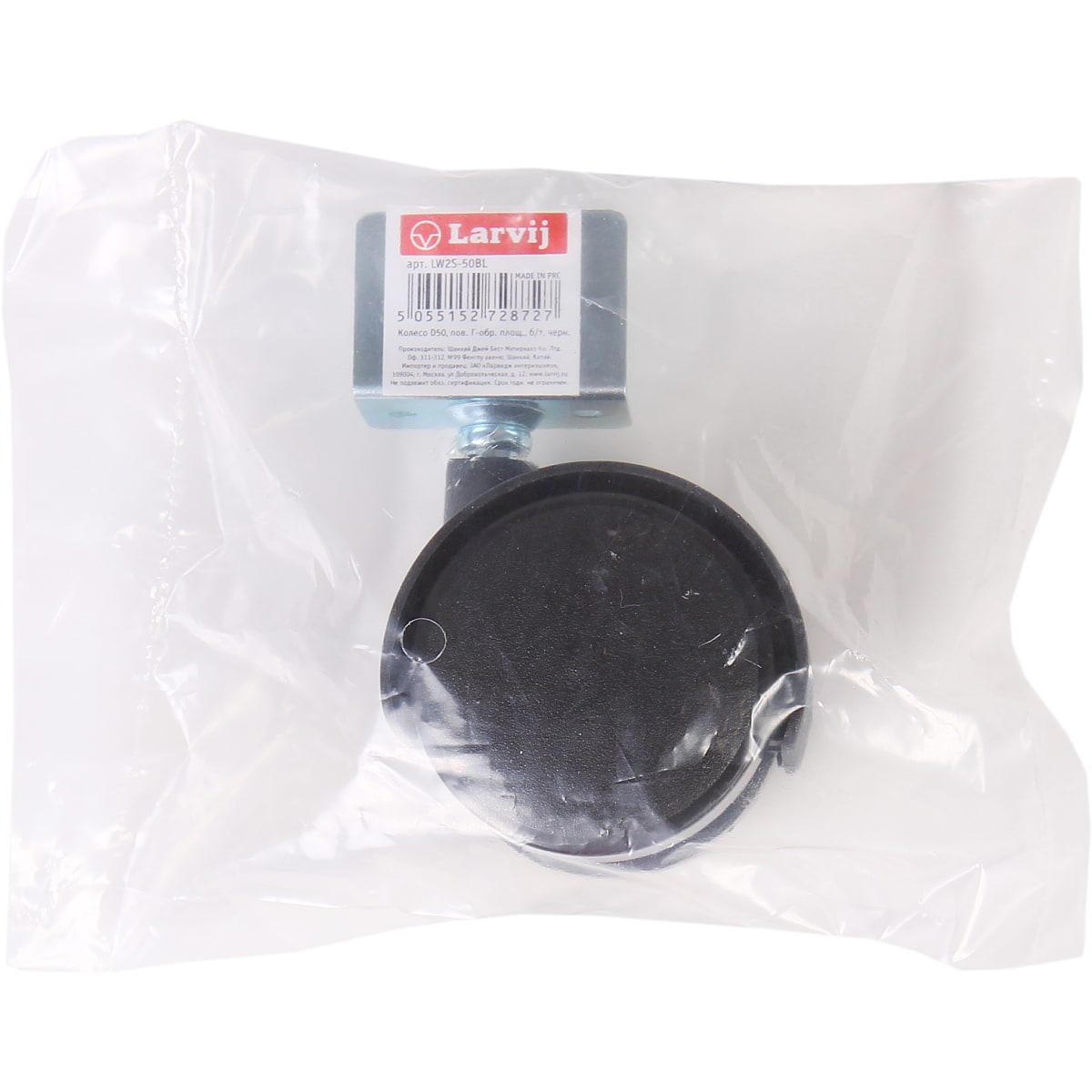 Колесо поворотное, без тормоза угловое крепление LW2S-50BL 50 мм, до 50 кг, цвет черный