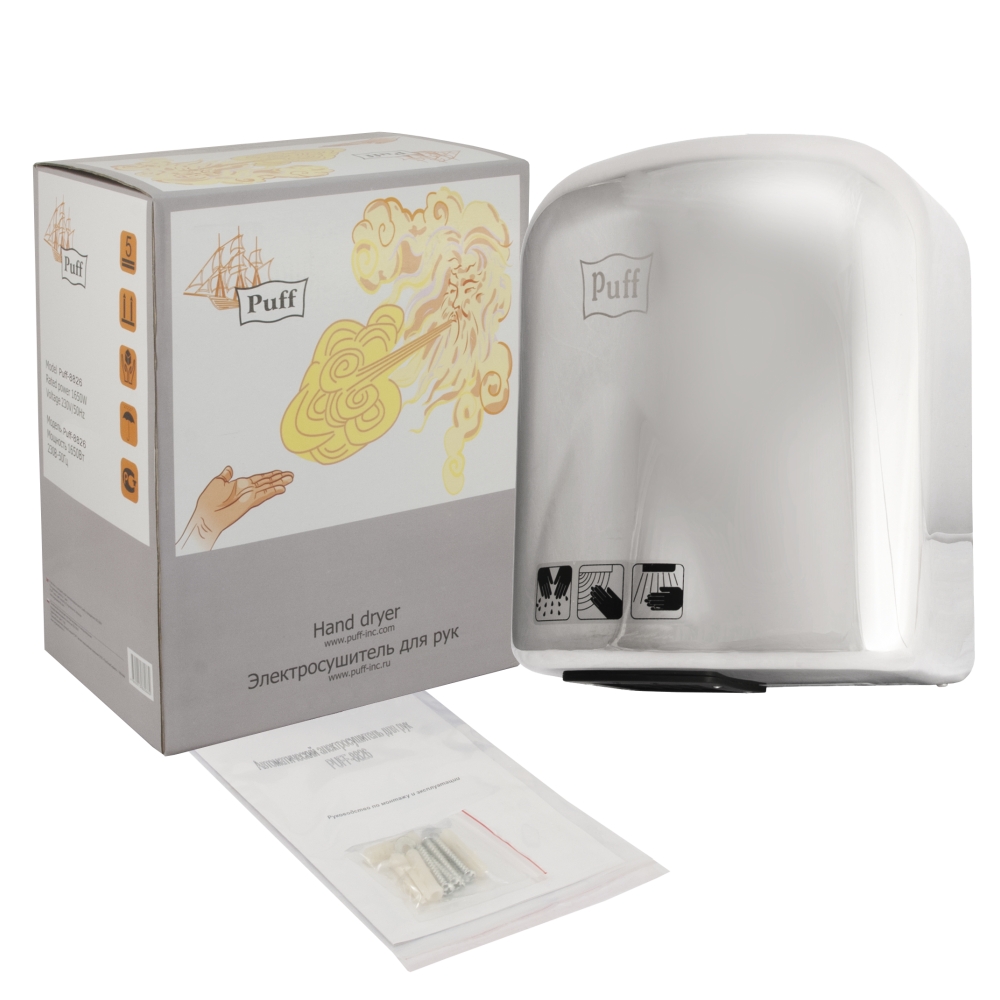 Сушилка для рук Puff-8826 – это надежное устройство для сушки рук. Она обладает небольшими размерами и устойчивостью к нагрузкам, что делает её отличным решением для монтажа в общественных местах.