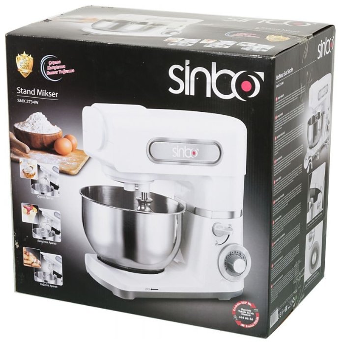 стационарный миксер мощность 800 Вт крючки для замешивания теста, венчик для взбивания вес 7.1 кг