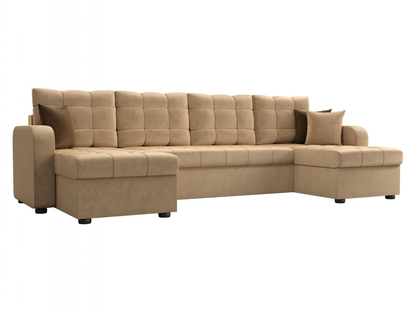 П-образный диван Ливерпуль микровельвет бежевый 4565