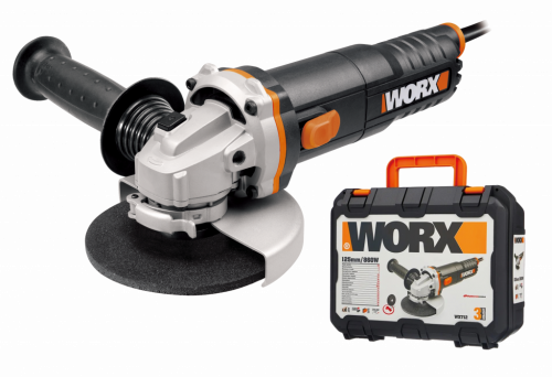 WORX WX712 работающая от сети 230В угловая шлифовальная машина 125 мм мощностью 860Вт. Антивибрационная 2-позиционная боковая рукоятка. Алюминиевый корпус редуктора. Безинструментальная регулировка защитного кожуха. Данная модель поставляется в кейсе.Технические характеристики:Тип двигателя: Щеточный.Напряжение 230 ВМощность: 860 ВтЧастота вращения 12000 об/мин.Диаметр диска: 125 ммДиаметр отверстия диска 22,2 ммРезьба шпинделя: М14Вес устройства: 2 кг.Комплектация:УШМ WORX WX712;1 шт. Гаечный ключ1 шт. Шлифовальный диск по металлу1 шт. Дополнительная рукоятка1 шт. SDS фланецКейс