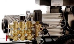 Насос высокого давления с тремя поршнями, покрытыми металлокерамикой, кривошипно-шатунным механизмом и кованной латунной головкой.
