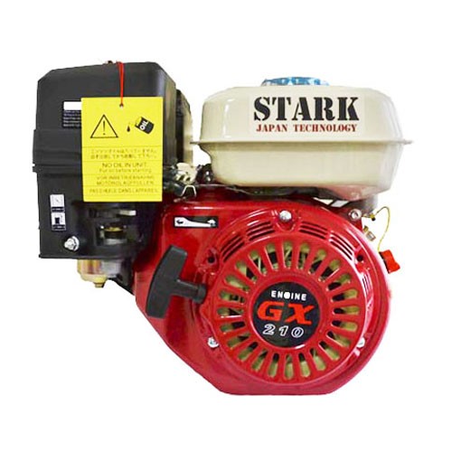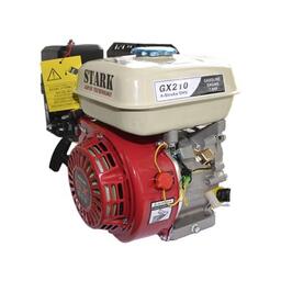 Stark GX210 F - б ензиновый агрегат, выполненный по технологии OHV и обладающий мощностью 7 л.с. Его ресурс составляет 2300 моточасов. Запаса прочности модели хватает для установки на технику с понижающими редукторами. Чаще всего изделие комплектуется на легкие мотоблоки, культиваторы и небольшую строительную технику.