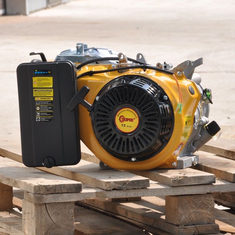 Бензиновый двигатель данного типа имеет большой опыт эксплуатации. Поэтому с уверенностью можно сказать, что он вполне надёжен и экономически выгоден. Горизонтальное расположение клапанов помогает изделию функционировать более безопасно и продуктивно. Важной особенностью модели является присутствие механического регулятора оборотов двигателя. Специальный датчик постоянно отслеживает уровень масла в системе и в случае критического понижения активизирует защитное отключение. Для запуска применяется ручной механизм, что вполне оправданно при сложных внешних условиях.