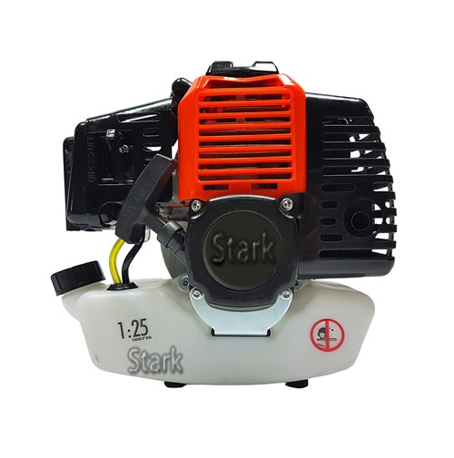 Stark 1E44F-5 + сцепление ― двигатель бензиновый, воздушное охлаждение. Используется в работе с бензотриммерами, моторубами, опрыскивателями, мотопомп, небольшой садовой и строительной техники. Бензин и масло используются в соотношении 25:1. Двигатель 2-тактный. В комплект идут сцепление и бак топлива. Топливный бак емкостью 1,2 л.
