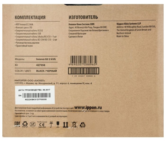 ИБП с двойным преобразованием Ippon Innova G2 2000