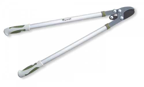 Двуручный сучкорез для толстых ветвей с рычажным механизмом усиления (развивает большее усилие, чем простой сучкорез). Скругленные лезвия облегчают работу в труднодоступных местах, среди густых ветвей и предотвращают случайные повреждения коры. Лезвия имеют антикоррозионное покрытие. Ручки из алюминия с резиновыми накладками.