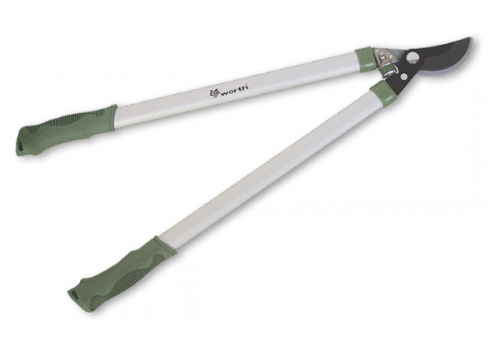 Двуручный сучкорез для толстых ветвей. Лезвия имеют антикоррозионное покрытие. Ручки из алюминия с резиновыми накладками, амортизационная вставка для гашения удара при смыкании.