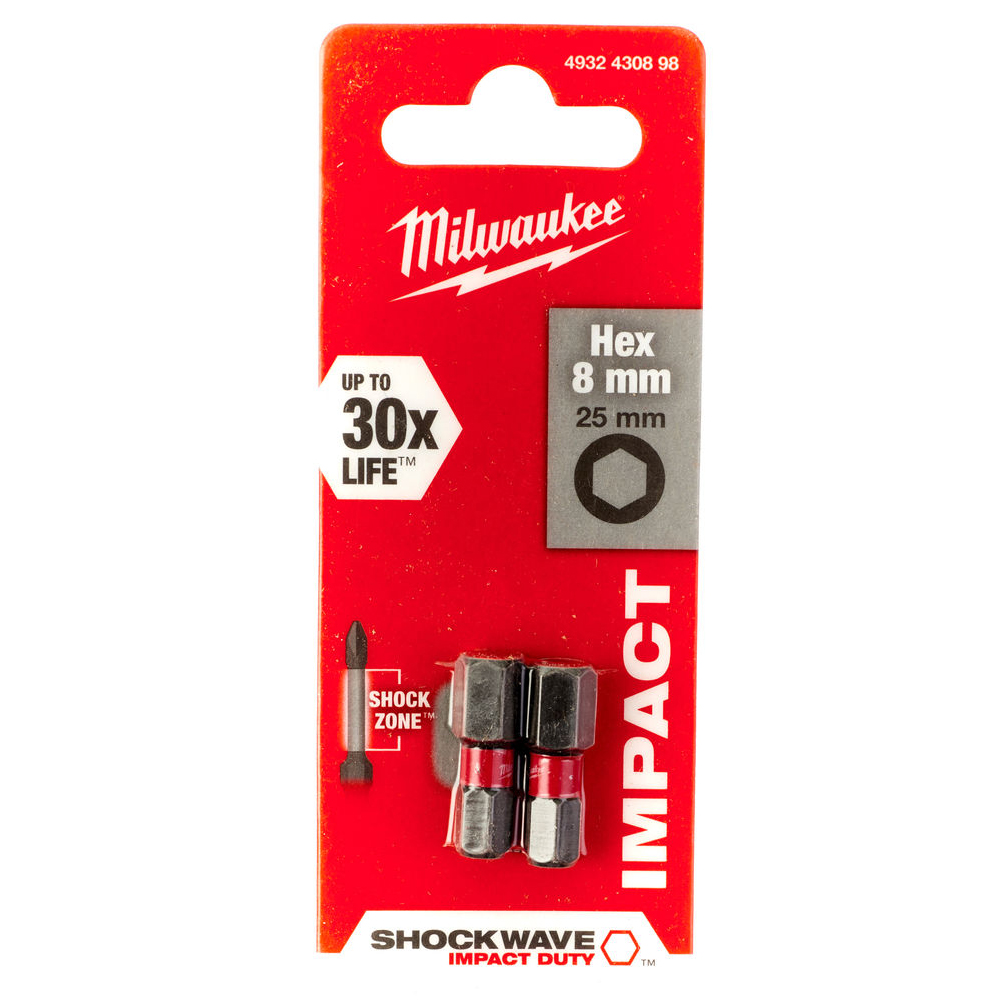 Бита ударная MILWAUKEE SHOCKWAVE Hex8 25 мм (2 шт.)