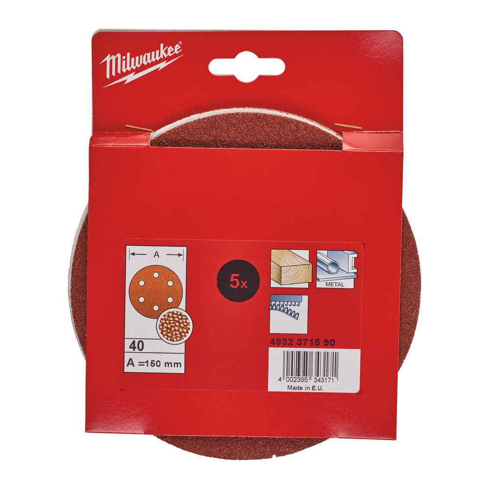 Шлифлист круглый D150 зерно G40 (5 шт.) MILWAUKEE