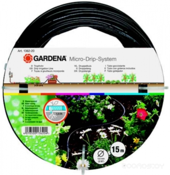 Шланг Gardena сочащийся для наземной прокладки 4.6 мм (3/16”) х 15 м c фитингами и мастер-блоком (01361-37)