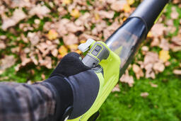 Комплектуется съемной высокоскоростной насадкой для уборки влажной листвы и тяжелого мусора