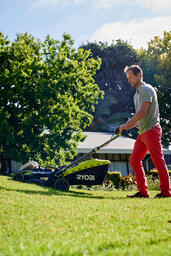 Ryobi RLM 36X41 H50P - и нструмент, позволяющий ухаживать за участками площадью до 600 м 2 . Для движения в труднодоступных местах может активироваться самоходная функция, для чего необходимо воспользоваться рычагом электроусиления.