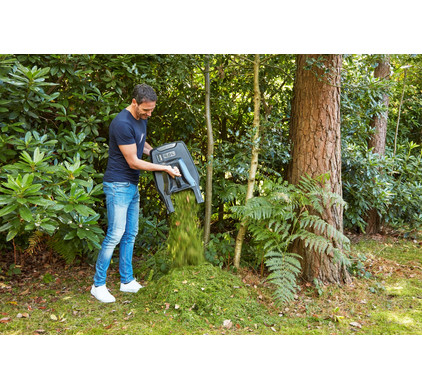 Жесткий травосборник снабжен ручкой для упрощения процесса очистки.
