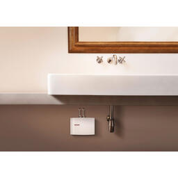 Проточный электробойлер для бытового пользования. Зачастую устанавливается в загородных коттеджах, дачных домах, квартирах. Нагревает воду до заданной пользователем температуры одновременно с включением крана. Характеризуется высокой мощностью и производительностью.