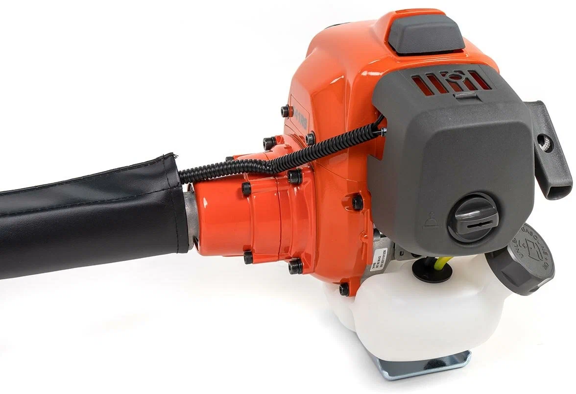 Триммер имеет компактные габариты и оптимальный вес, составляющий 7.6 кг. Им комфортно управлять благодаря ременной оснастке ранцевого типа, которая равномерно распределяет нагрузку на оператора. В сравнении с аналогами модель характеризуется меньшей шумностью, а также следующими параметрами: