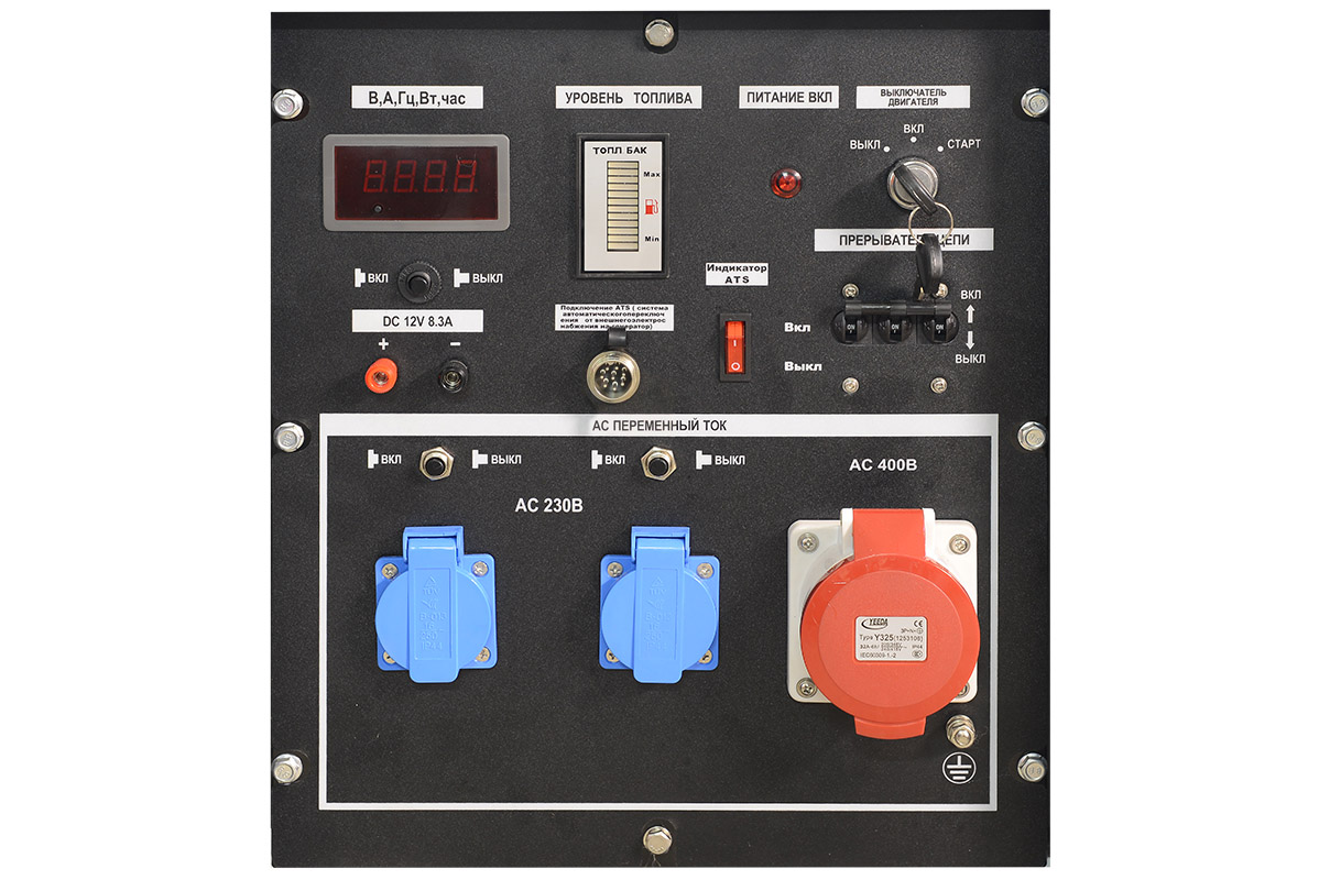 Индикатор уровня топлива в баке и счетчик моточасов для своевременного обслуживания установки.