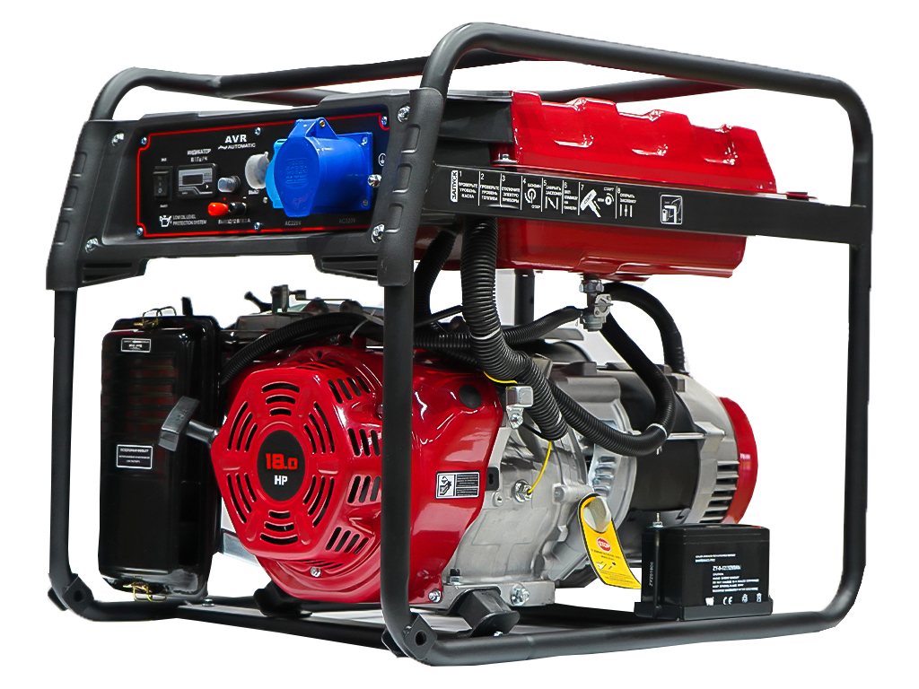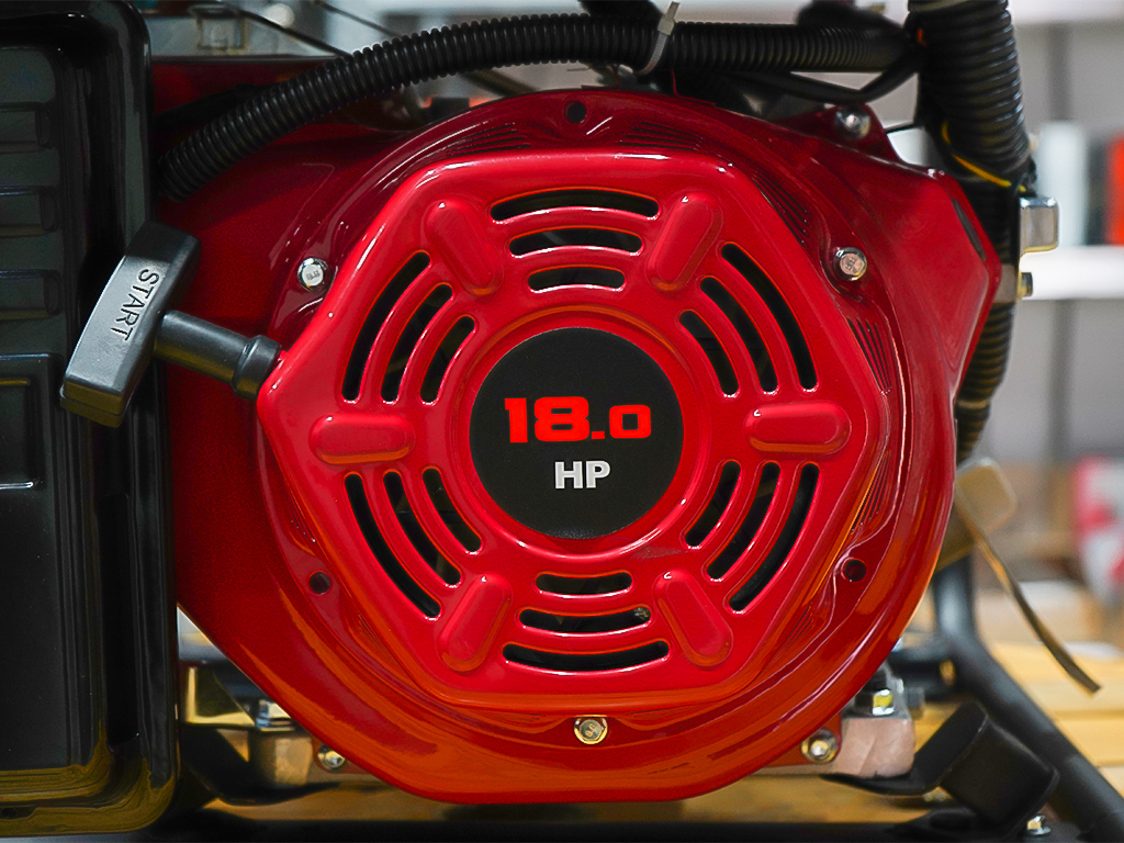 Модель оснащена долговечным четырехтактным мотором мощностью 18 л.с. Двигатель запускается как вручную, так и с помощью электрического стартера. Также генератор обладает следующими особенностями: