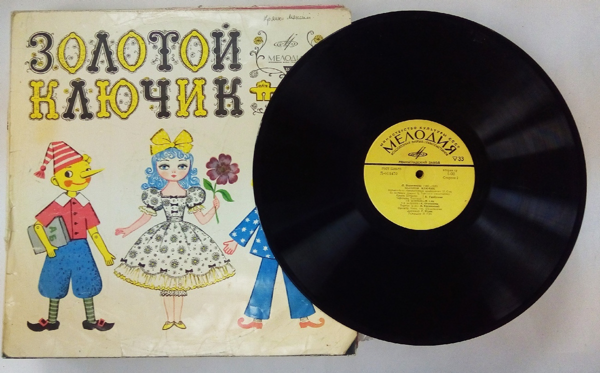 Пластинка виниловая "Золотой ключик" Мелодия 70-е 300 мм. (Сост. на фото)
