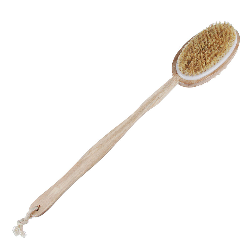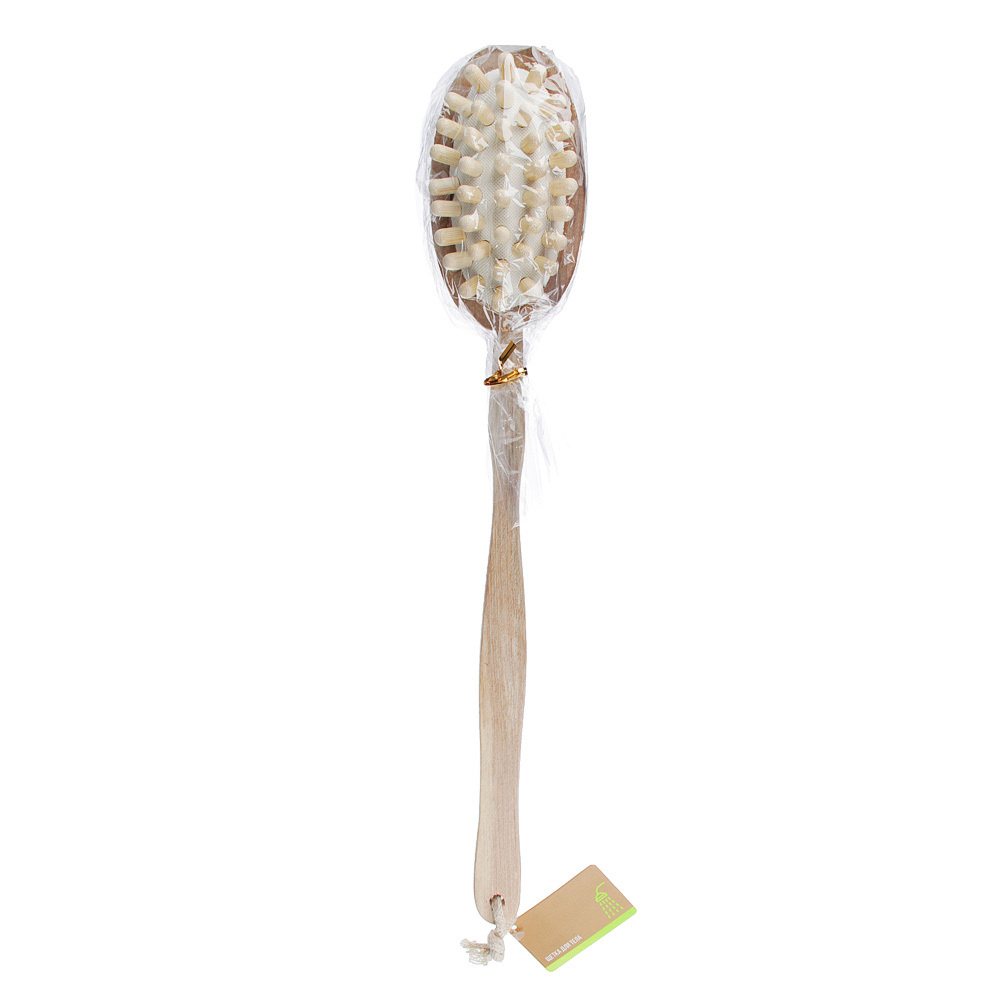 10828 Щетка для тела двойная с натуральной щетиной и массажером на цельной деревянной ручке, 42см