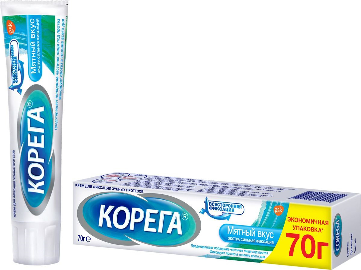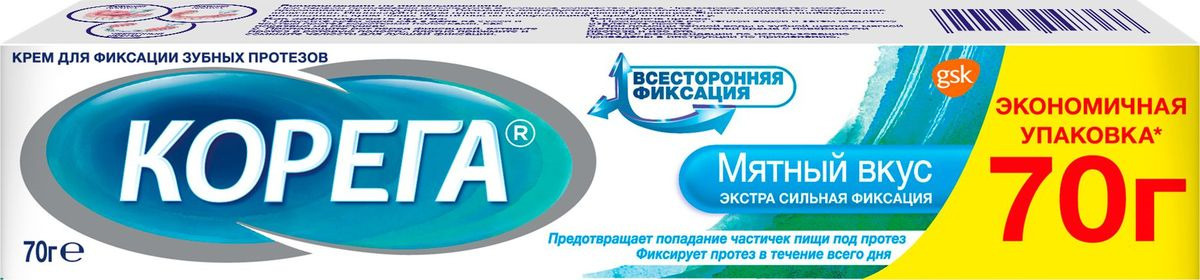 Крем для фиксации зубных протезов Корега "Экстра сильный мятный", 70 г