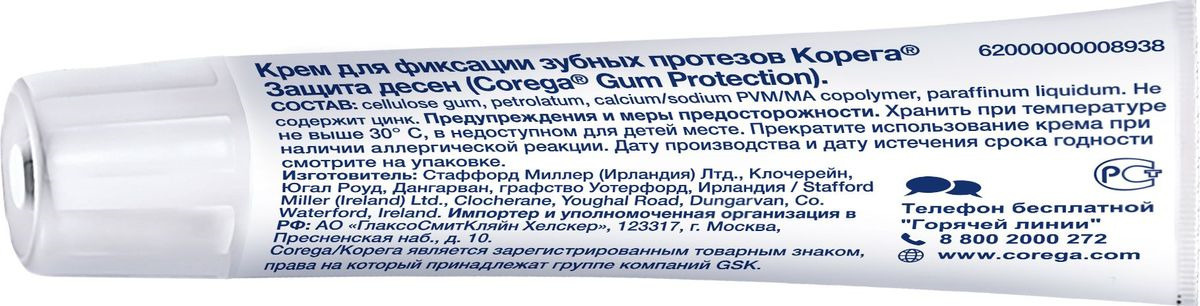 Способ примененияНебольшое количество крема наносят точечно или тонкими полосками на сухой чистый протез. Для очищения протеза рекомендуется использовать таблетки Корега. Крем не рекомендуется наносить близко к краю протеза, после нанесения необходимо вставить протез и плотно прижать его в течение нескольких секунд. При необходимости удалить остатки крема с десен и протеза салфеткой, смоченной маслом.