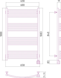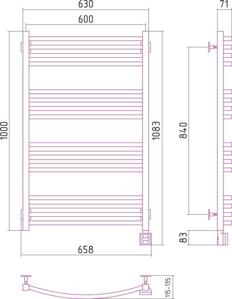 Полотенцесушитель электрический Сунержа Аркус 1000х600 с блоком управления слева скрытое подключение, 00-0530-1060