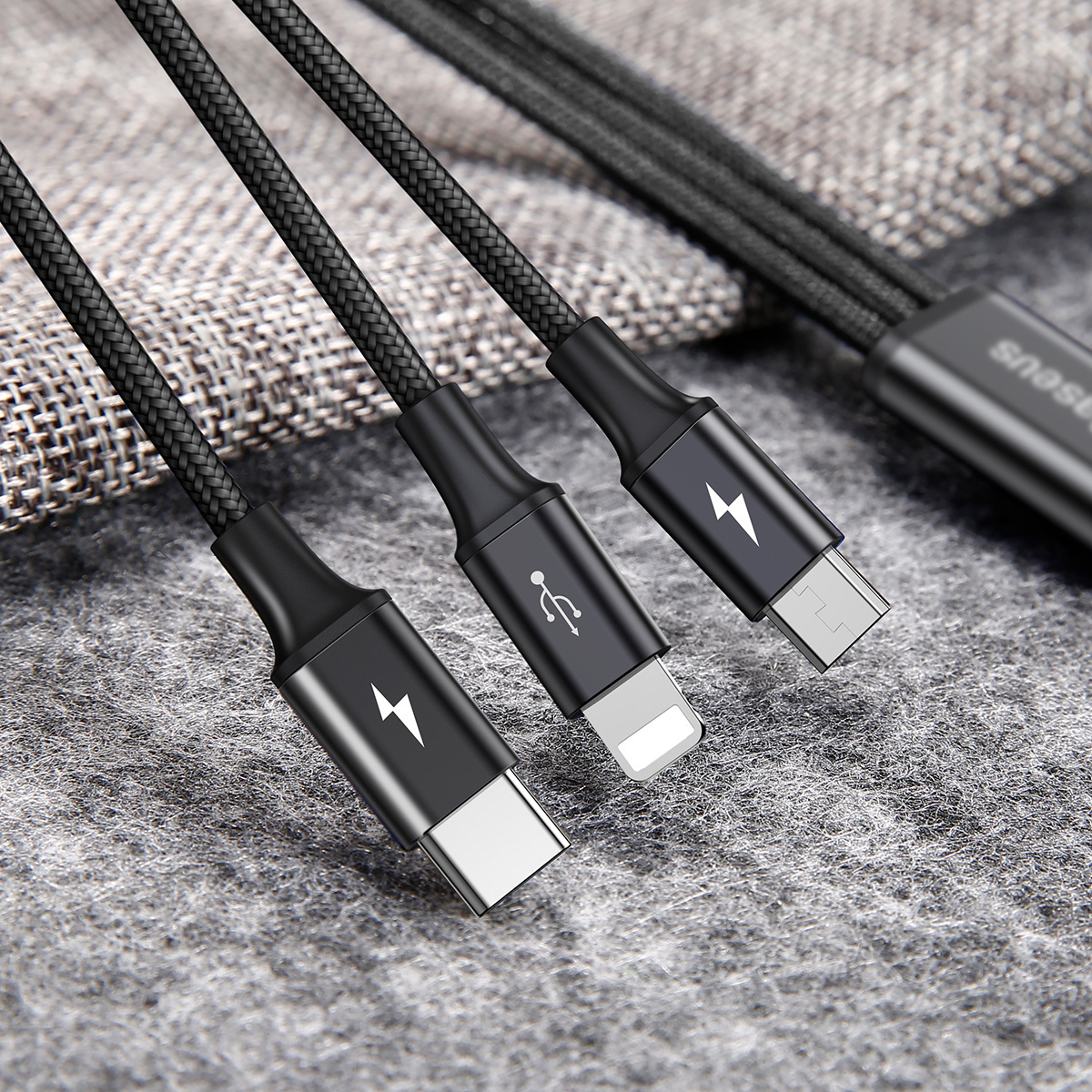 Кабель зарядки 3в1 (micro USB+Type-C+Lightning) Baseus Rapid Series 3-in-1 Cable Micro+Lightning+Type-C, 3A max, 1.2м, black