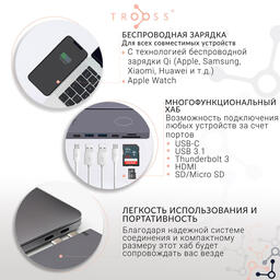 Trooss USB-C Хаб / Концентратор / Переходник для Macbook Pro и Air Беспроводная Зарядка, порты HDMI, 2хUSB 3.1, USB C, Thunderbolt 3, Картридер SD / Micro SD