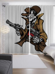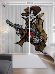 Шторы с фотопечатью "Скелет-ковбой с пистолетом" из сатена, 290х265 см
