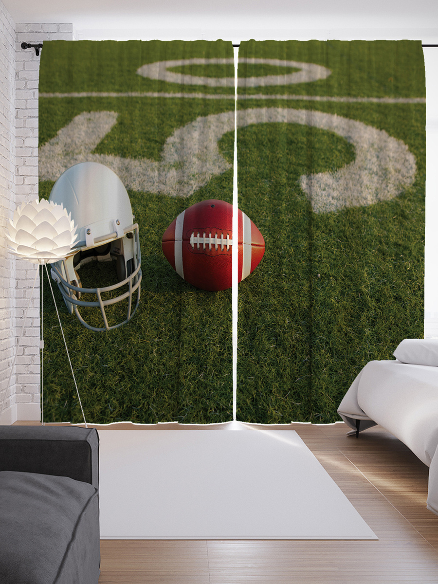 Шторы с фотопечатью "Атрибуты Американского футбола на поле" из сатена, 290х265 см