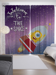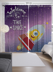 Шторы с фотопечатью "Добро пожаловать в космос" из сатена, 145x265 см