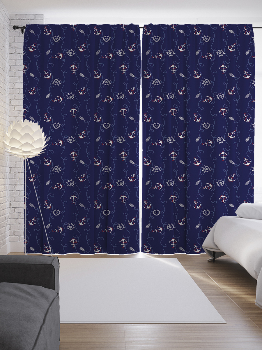 Шторы с фотопечатью "Якорь и штурвал" из сатена, 290х265 см