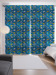 Шторы с фотопечатью "Маленький космонавт" из сатена, 290х265 см