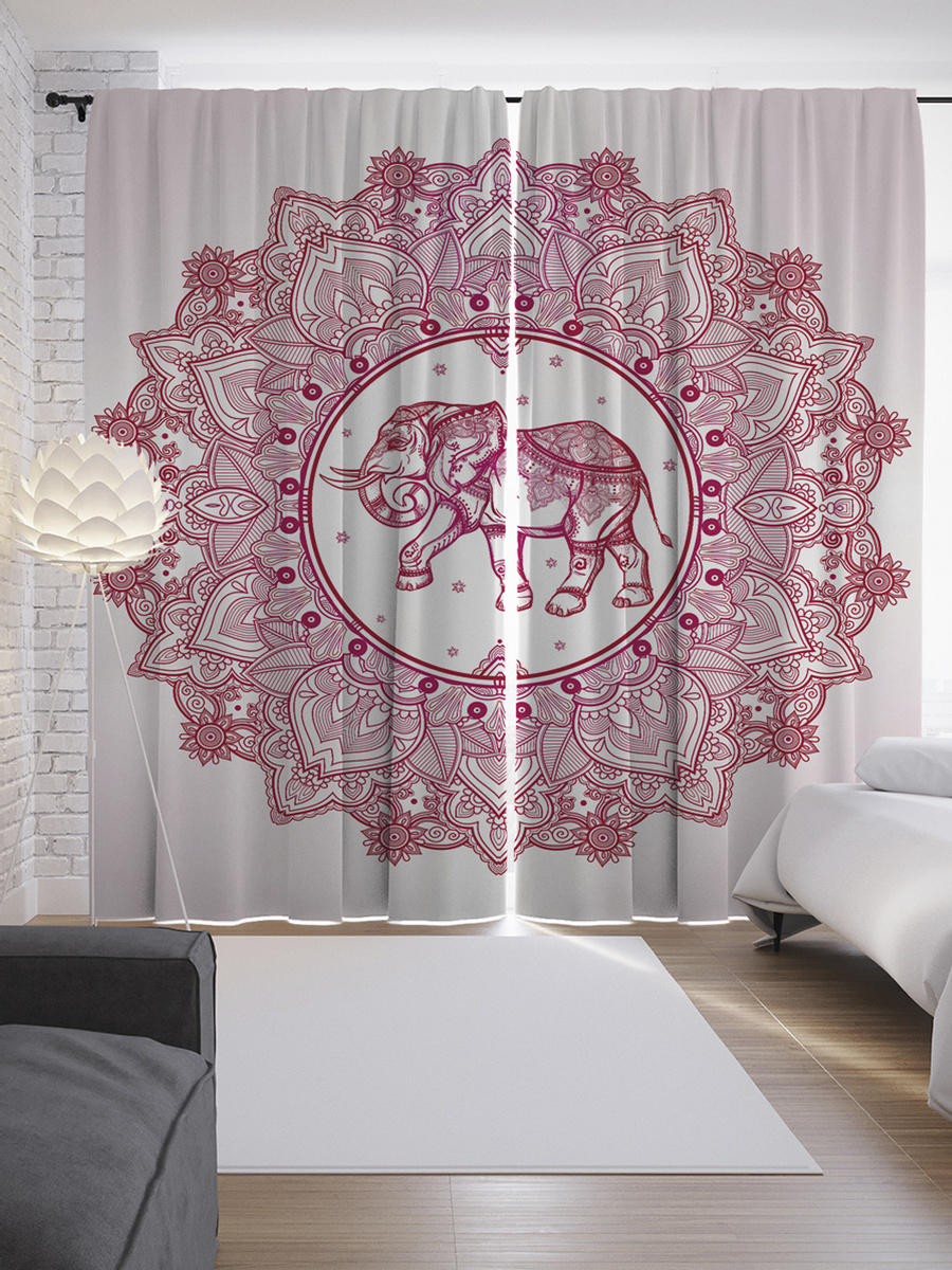 Шторы с фотопечатью "Мандала со слоном" из сатена, 145x265 см