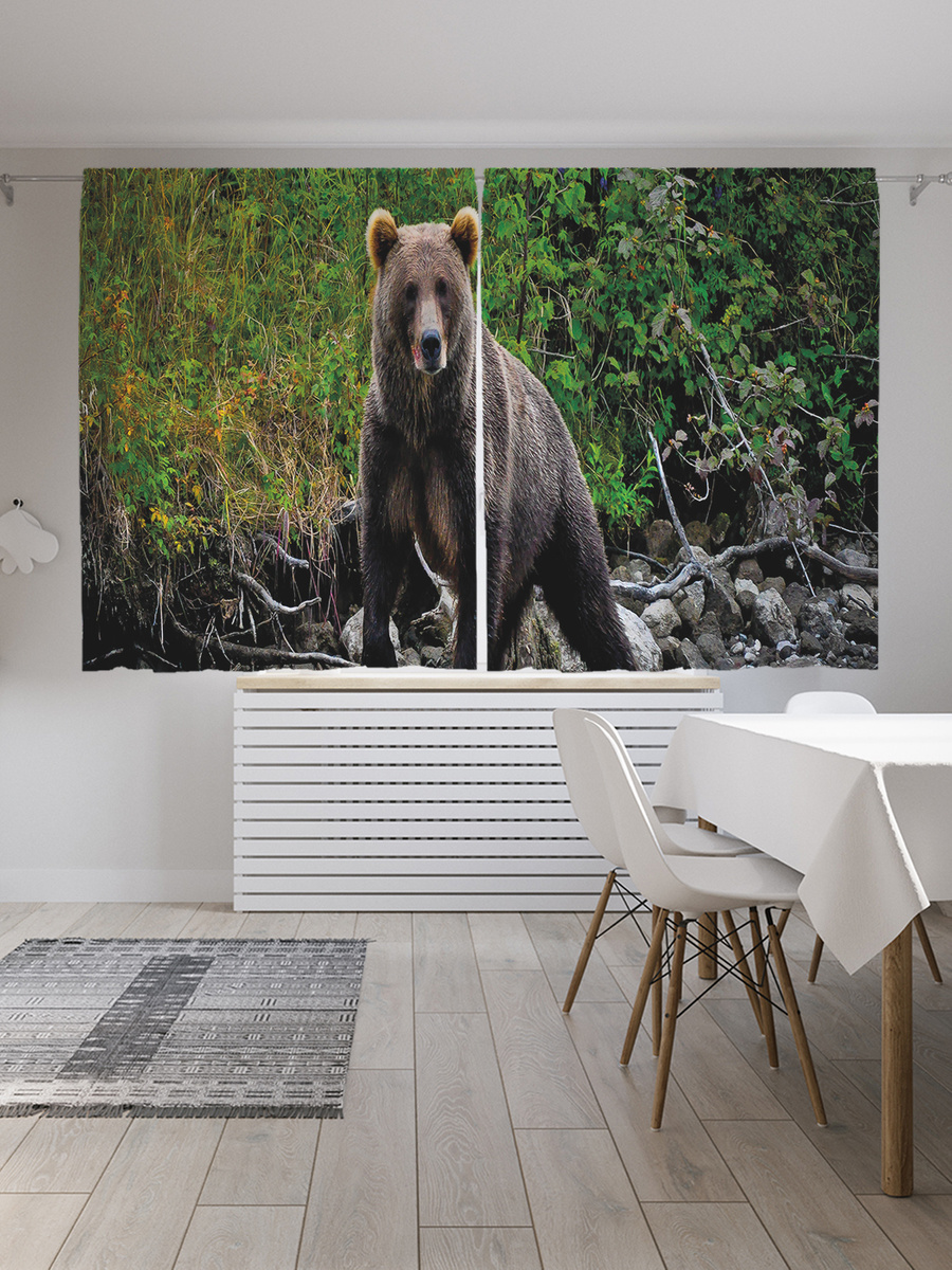 Шторы с фотопечатью "Медведь в реке" из сатена, 145х180 см
