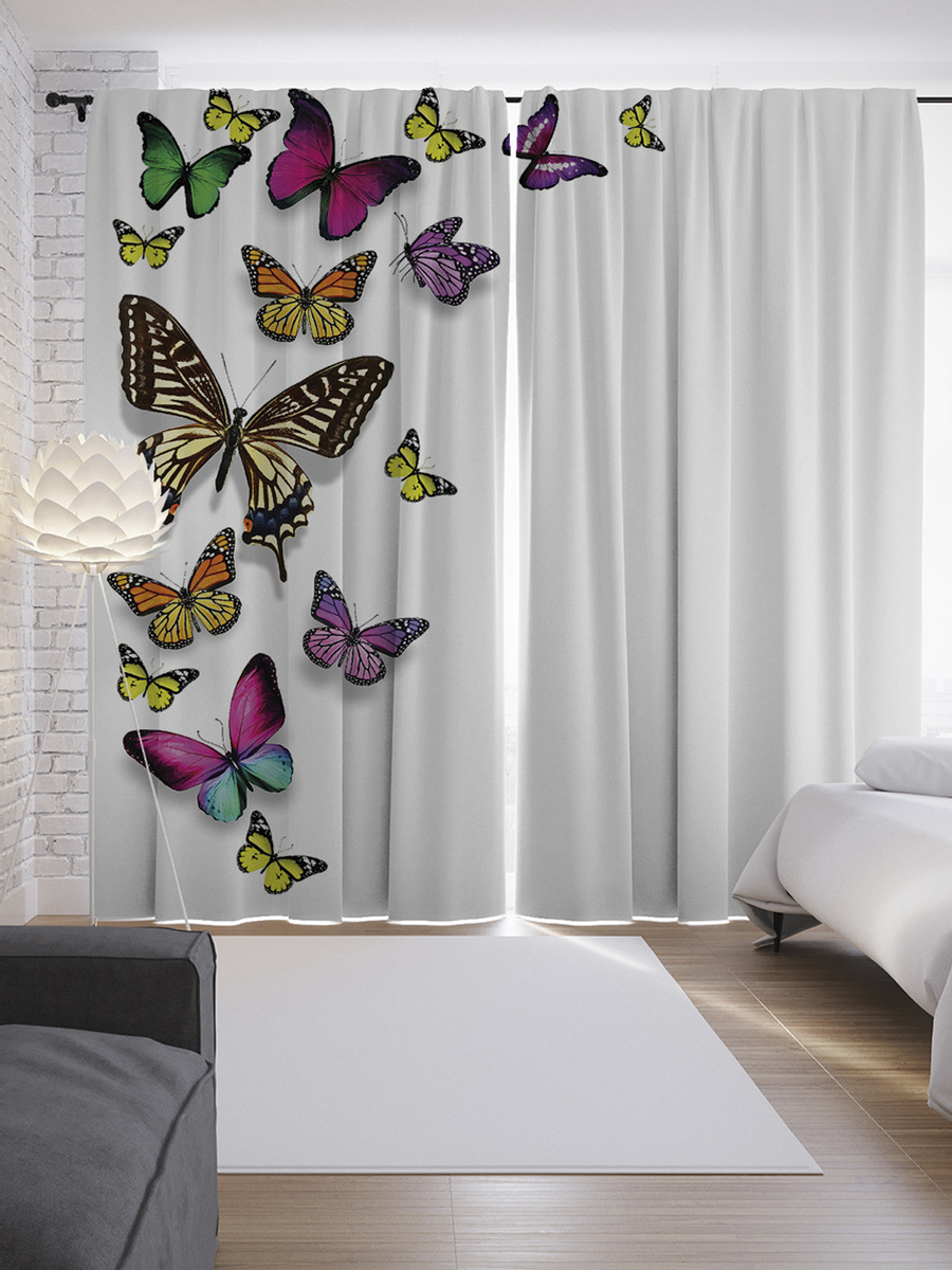Шторы с фотопечатью "Бабочковый вихрь" из сатена, 145x265 см