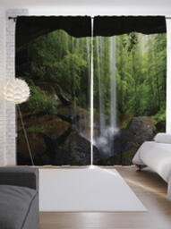 Шторы с фотопечатью "Укрытие под водопадом" из сатена, 145x265 см
