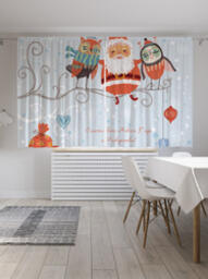 Шторы с фотопечатью "Дед Мороз и совы" из сатена, 145х180 см