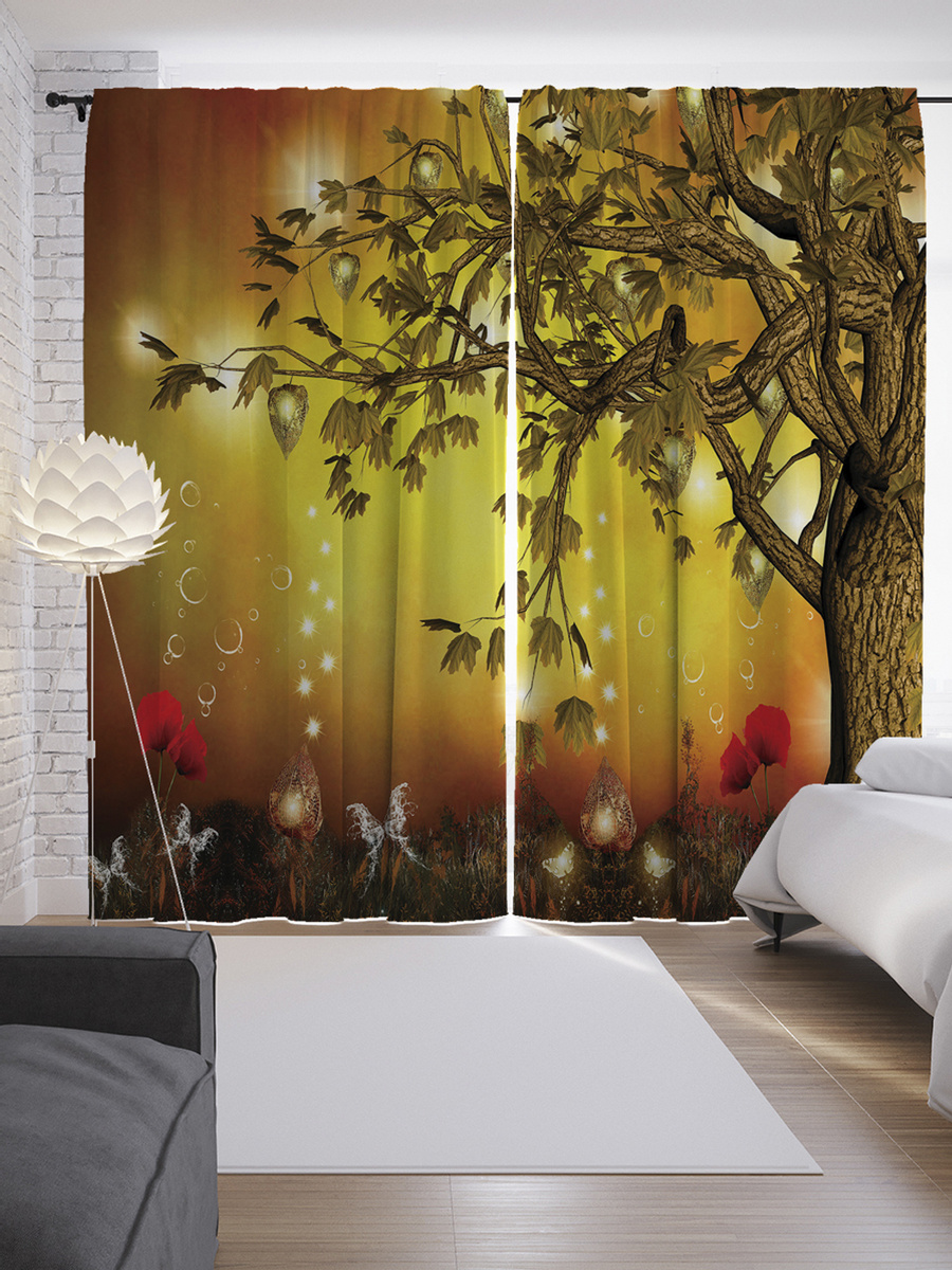 Шторы с фотопечатью "Древо исцеления" из сатена, 145x265 см