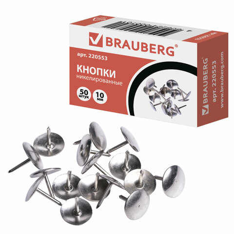 - Модель Кнопки канцелярские BRAUBERG мет. серебристые 10мм. 50шт.