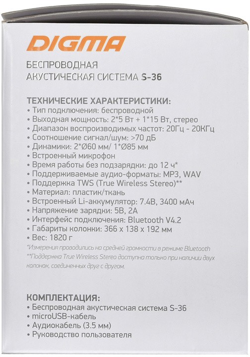 • Источники и носители Bluetooth v 4.2mini-Jack (3.5 мм)USBкартридер