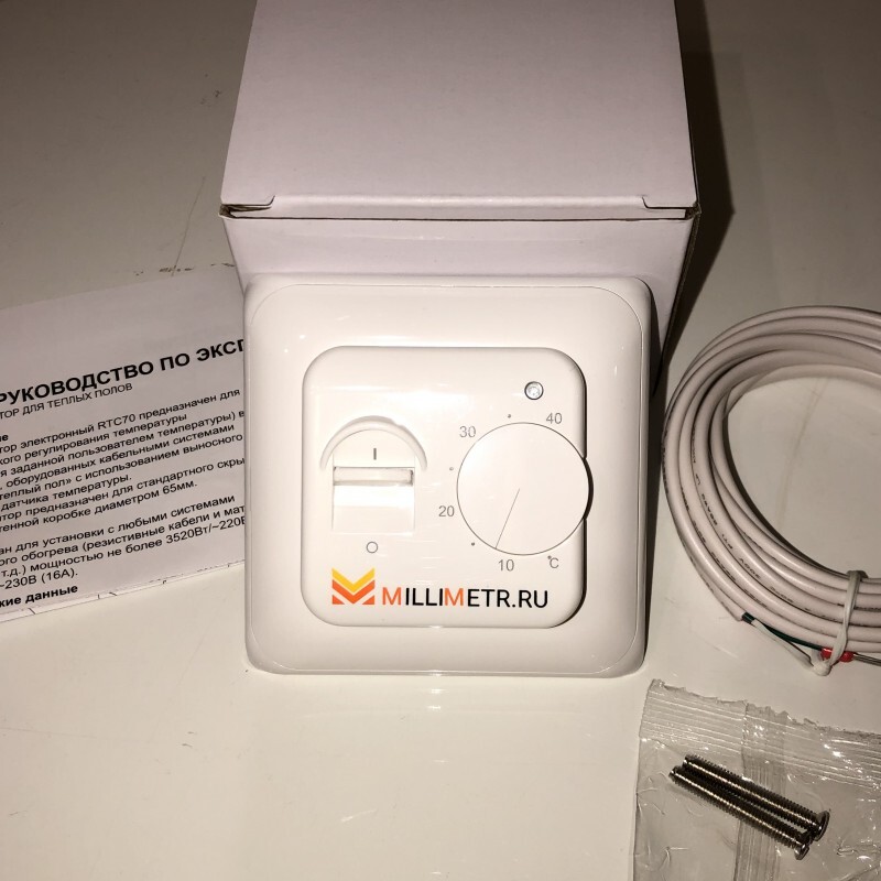 - Комплектация Терморегулятор – 1 шт. Датчик температуры пола – 1 шт. Паспорт, инструкция
