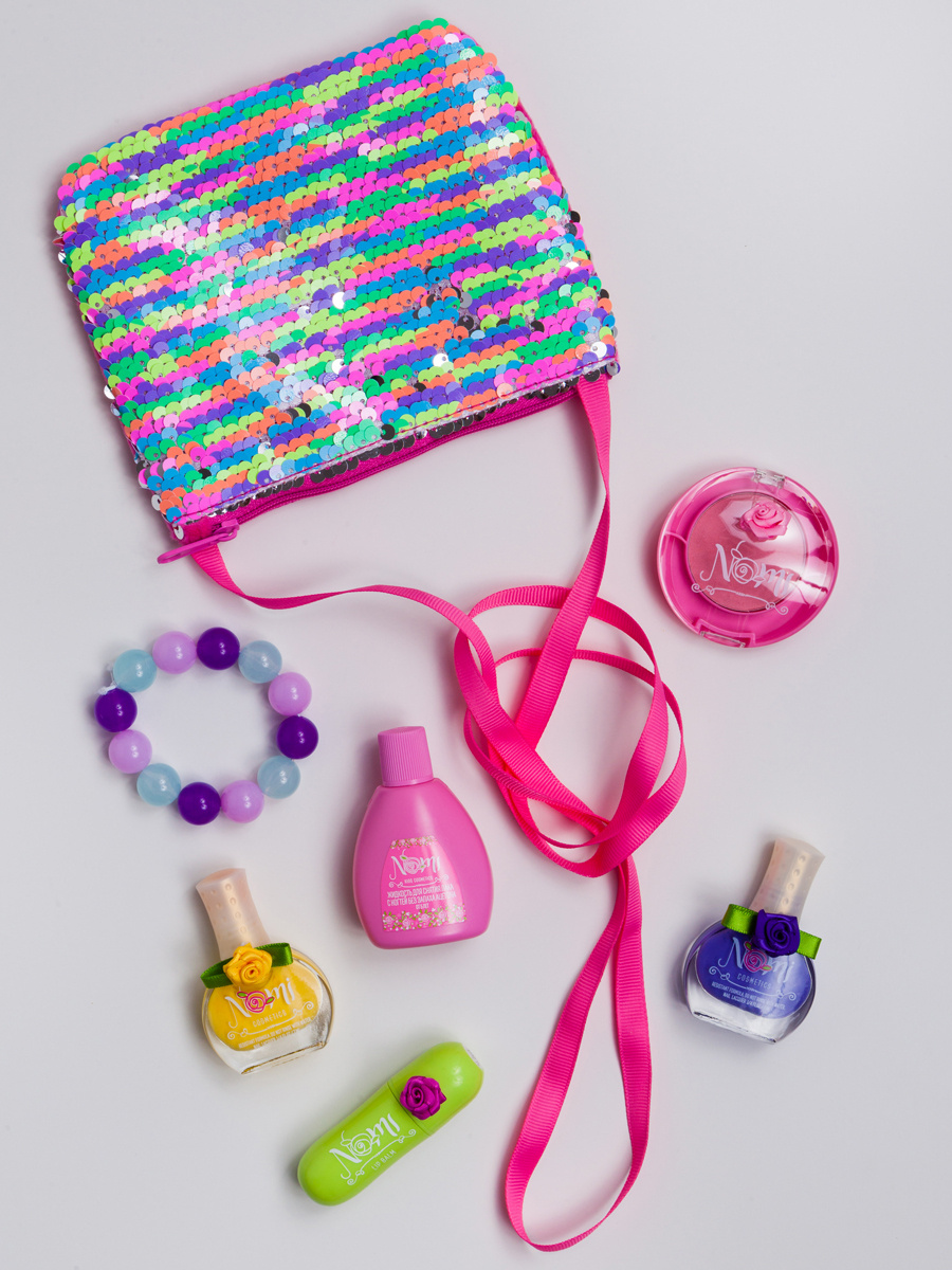NOMI Подарочный набор детской косметики "Волшебное конфетти №3" (Сумочка + набор детской косметики + браслет)