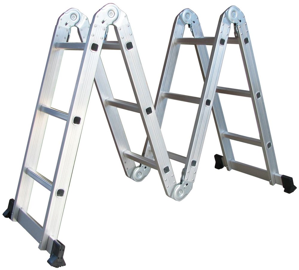 Мультифункциональная лестница из алюминия. Может использоваться как в качестве свободностоящей лестницы, так и приставной, рабочей. Стремянка состоит из 12 ступеней.