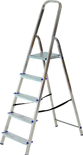 Алюминиевая стремянка с односторонним восхождением. Верхний загиб стремянки работает как поручень и обеспечивает устойчивость при работе на высоте. Максимальная нагрузка: 150 кг.